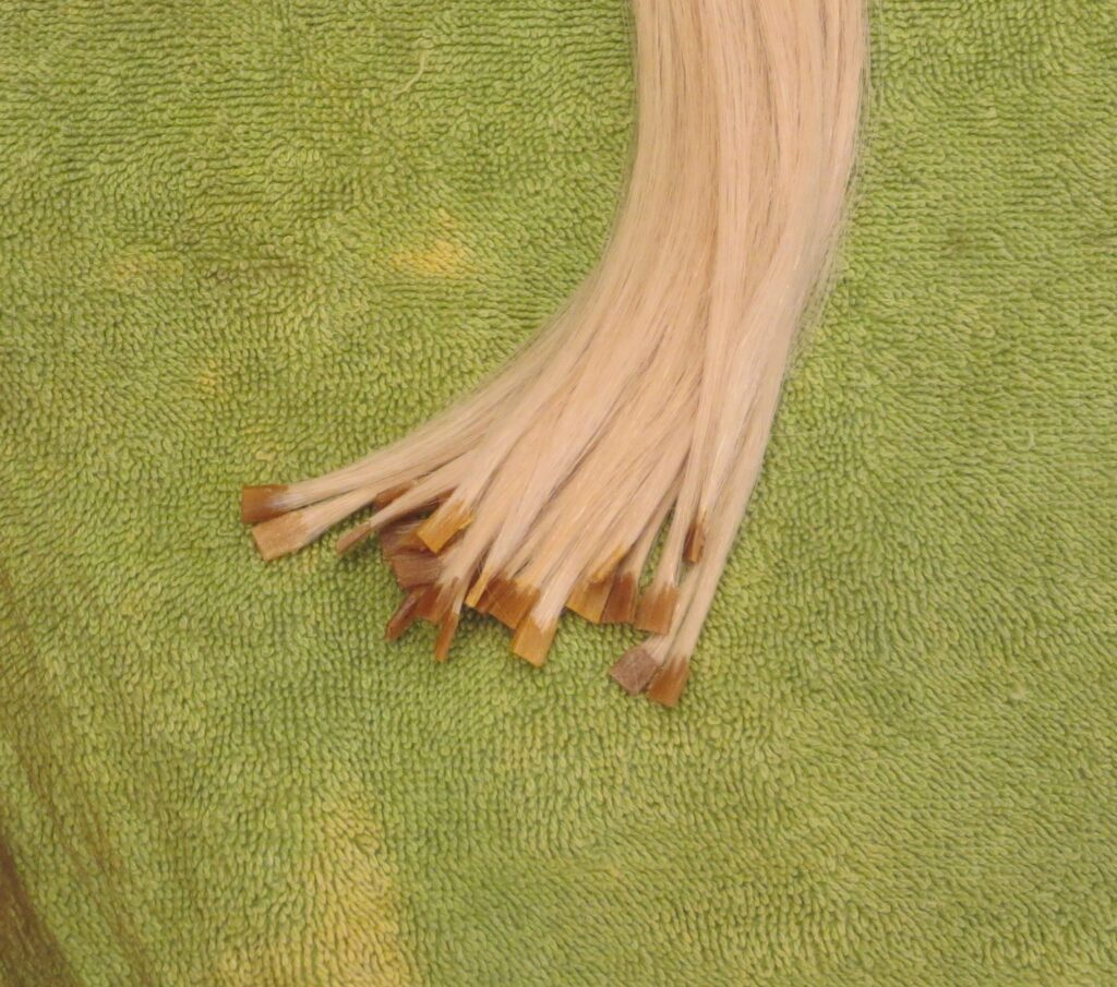 Fusion bonds should be removed at the salon, not at home. Fusion extensions should also not be allowed to just “wear out” of your head. We have seen this frequently with clients coming from other salons. This is a major factor in some of the unfavorable results from fusion extensions one may read about on the internet.